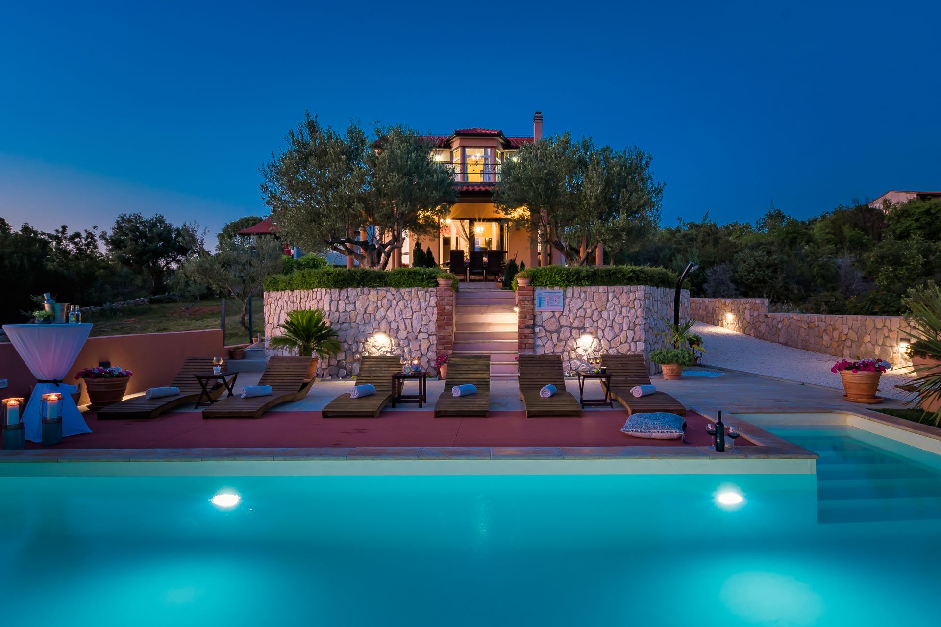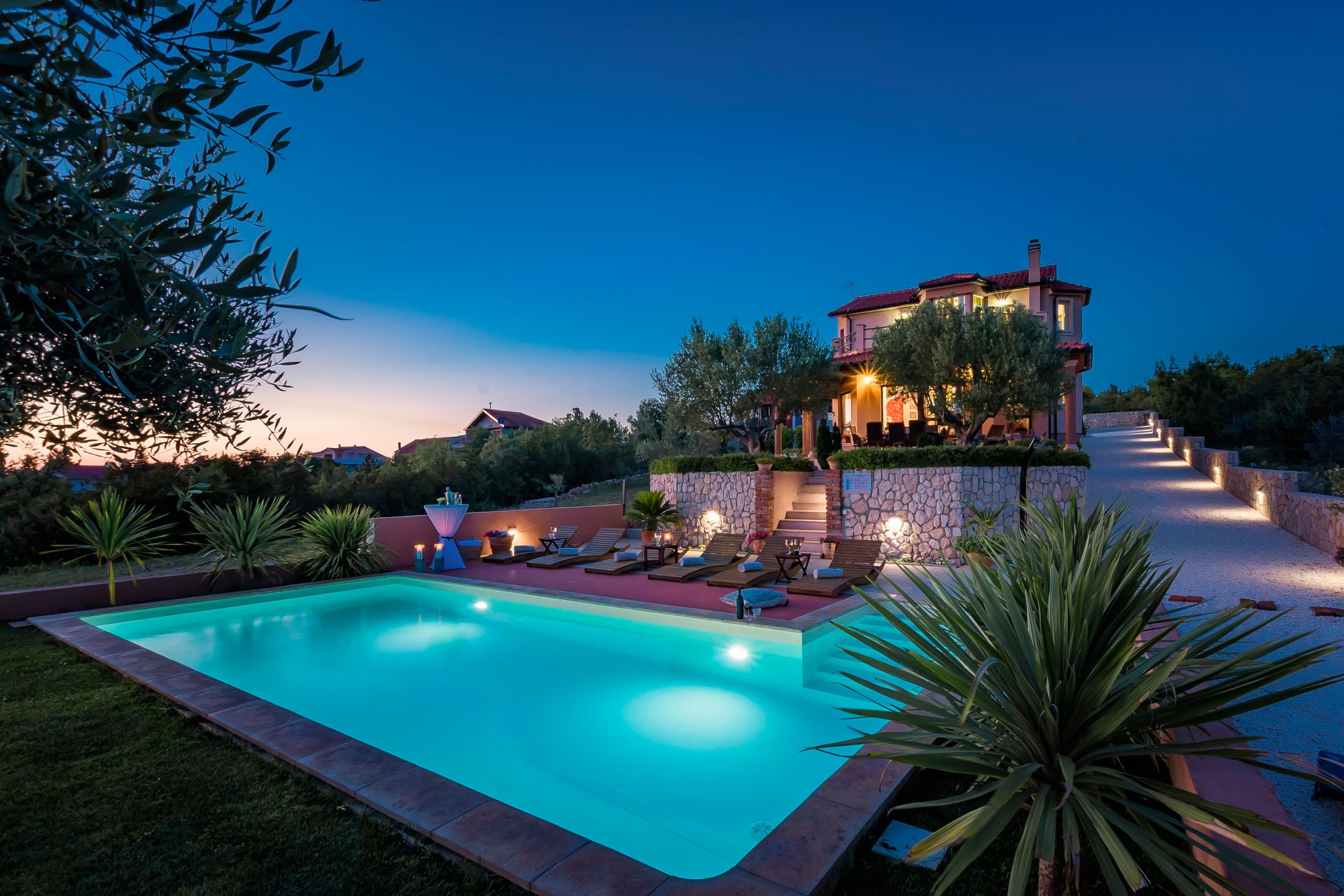 This beautiful villa is in the Dalmatian village Bilice, not far from the historical town Šibenik and Krka National Park. The site is nestled into a green landscape near the Adriatic.
