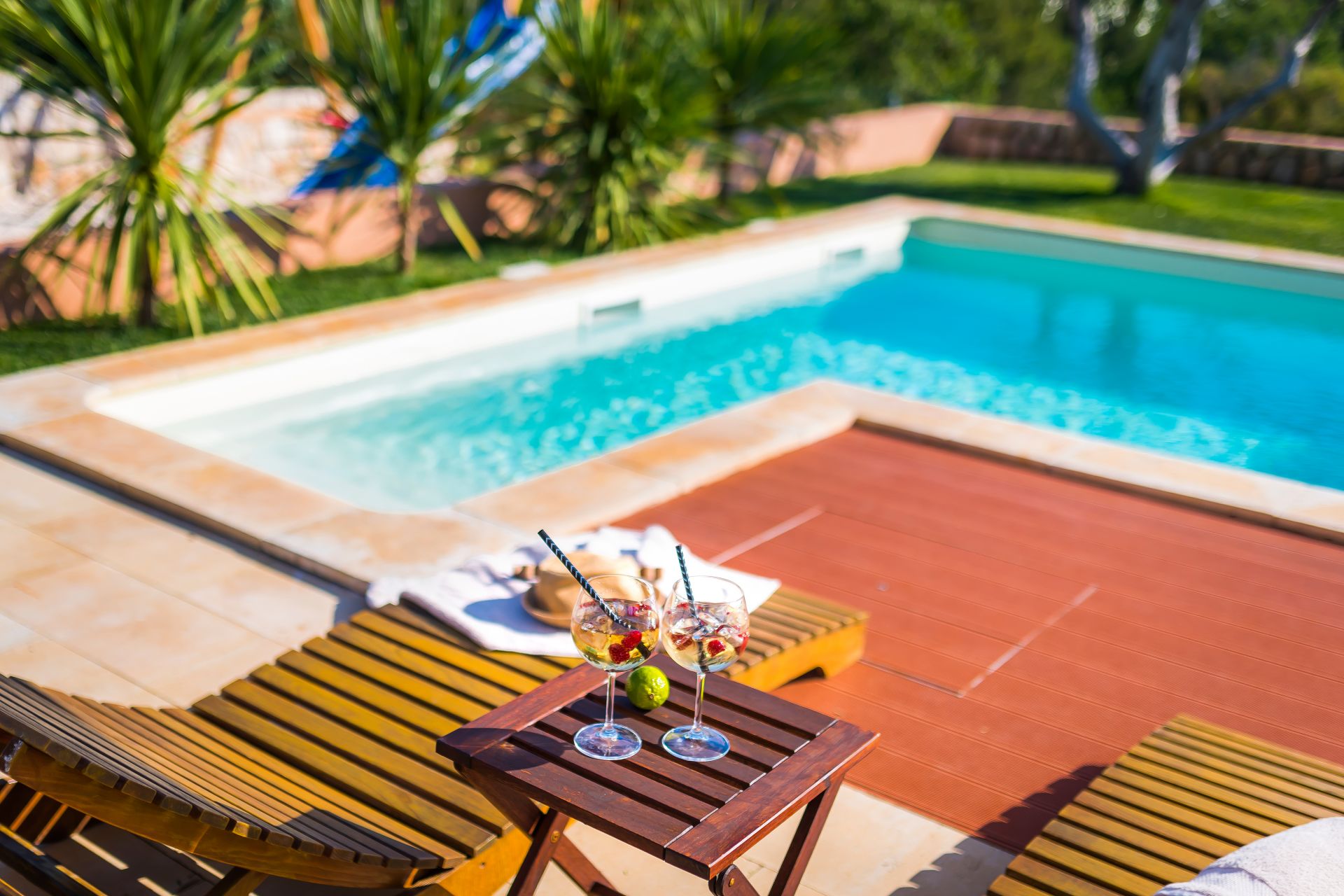 The luxurious holiday house provides around 269m² of living space and will impress you with its stylish interior and hint of neoclassical architecture. Air conditioning, heating and underfloor heating are available throughout. The accommodation comprises a fully-equipped kitchen with an adjoining dining space, a separate living room with access to the terrace, four bedrooms andfour bathrooms with a rain shower. The three bedrooms are each furnished with a double bed (180cm wide) and one of them also has a single bed (90cm wide) for a further person. A washing machine and dryer are available for use free of charge.