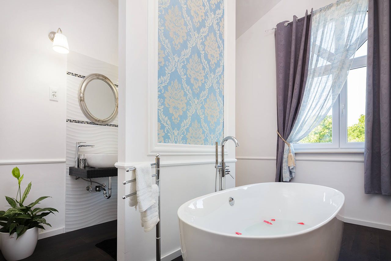 You can find restaurants, bars and everyday shops about 1km away. With a view of the sea and of forested nature, this luxurious holiday house is an ideal place for guests seeking a relaxing holiday away from the hustle and bustle and the noise of town, but close enough to the cultural and social life of Dalmatia. The nearest beach is about 800 metres away. You can visit the historical town centre of Šibenik and the imposing cathedral 4km away. The impressive landscape of Krka National Park with its cascading waterfalls is only about 6km from the accommodation. The little town Vodice about 12km away is known for its vibrant nightlife.